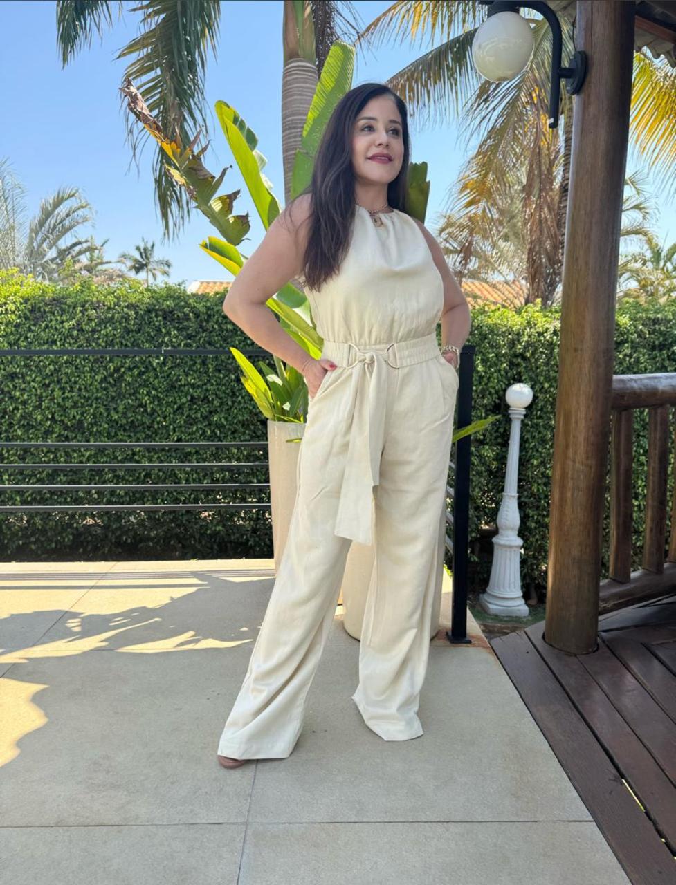 Macação em linho modalagem soltinha em linho na cor amarelo manteiga , elegante para ocasiões epeciais, como festas e casamentos , com caimento perfeito , arrase onde for